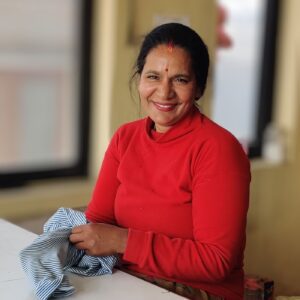 Srijana on työskennellyt vuosia samassa ompelimossa ja kertoo työn antavan hänelle mahdollisuuksia vaikuttaa lastensa koulutukseen.