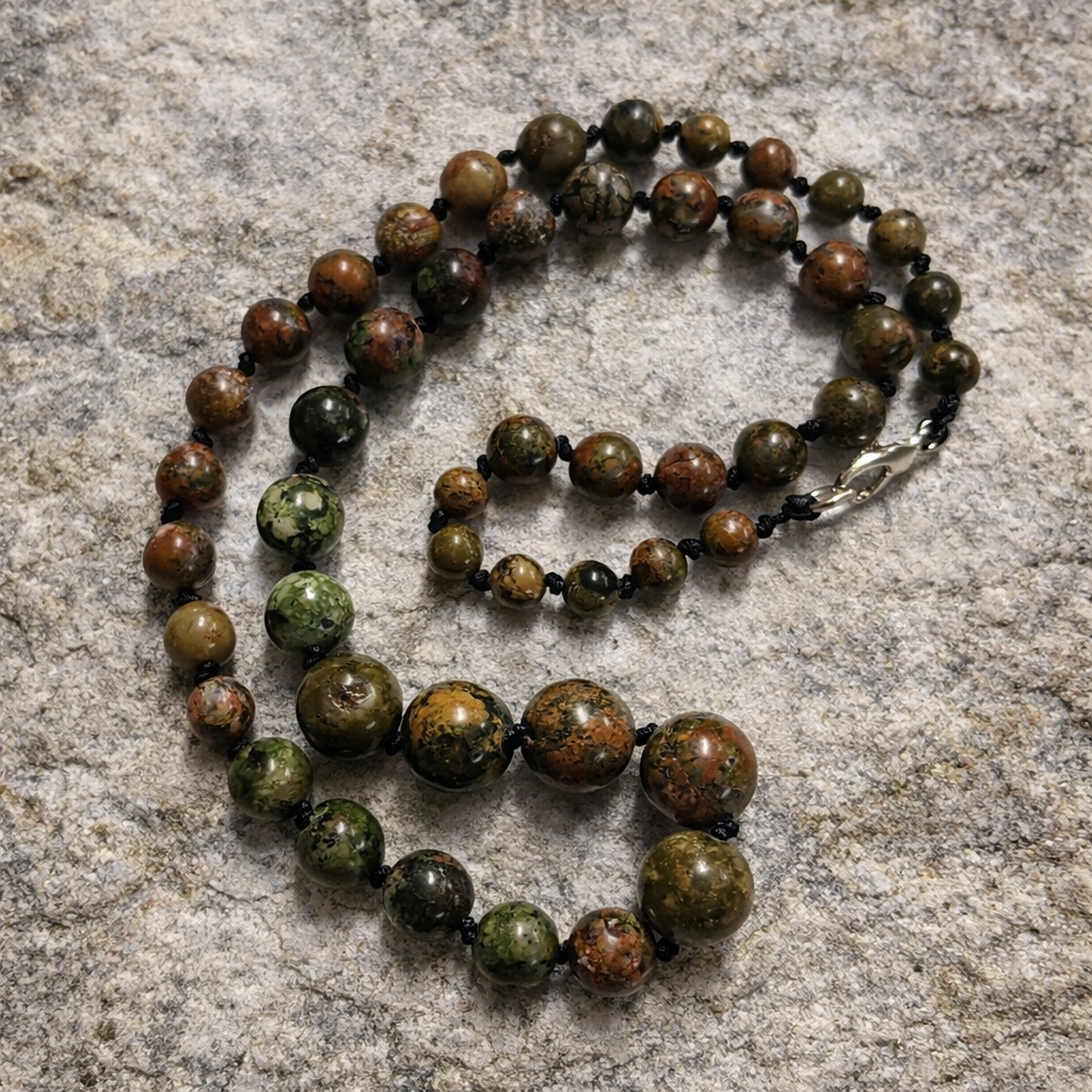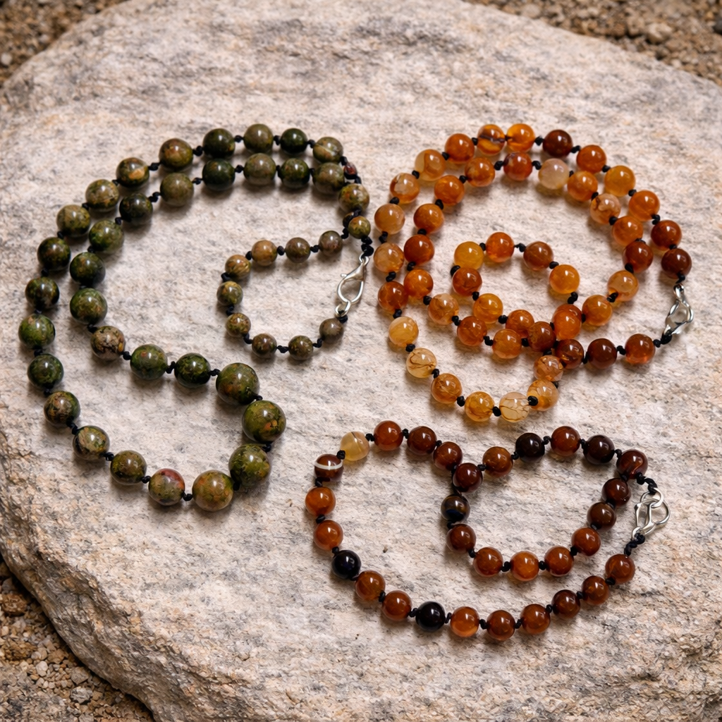 Ajattomat ja uniikit kivikorut täydentävät asusi luonnonläheisesti. Kivien taikaa – jokaisella luonnonkivellä on omat ominaisuutensa. Kivihelmien ympärysmitta on 50 cm.