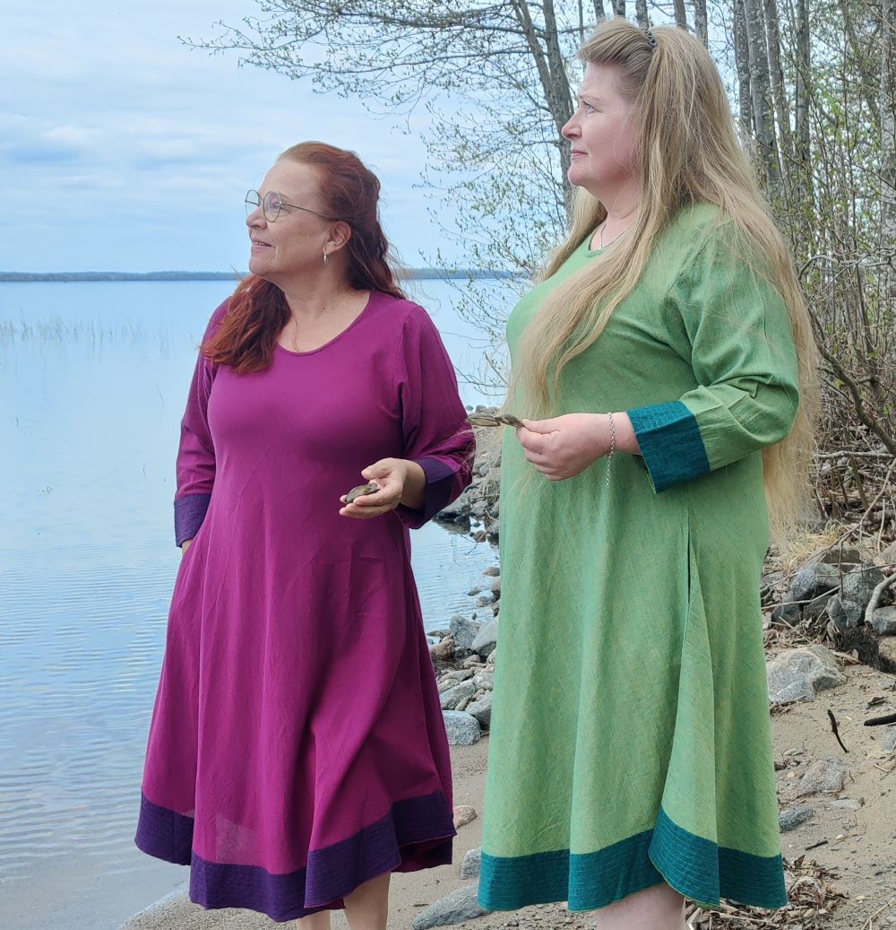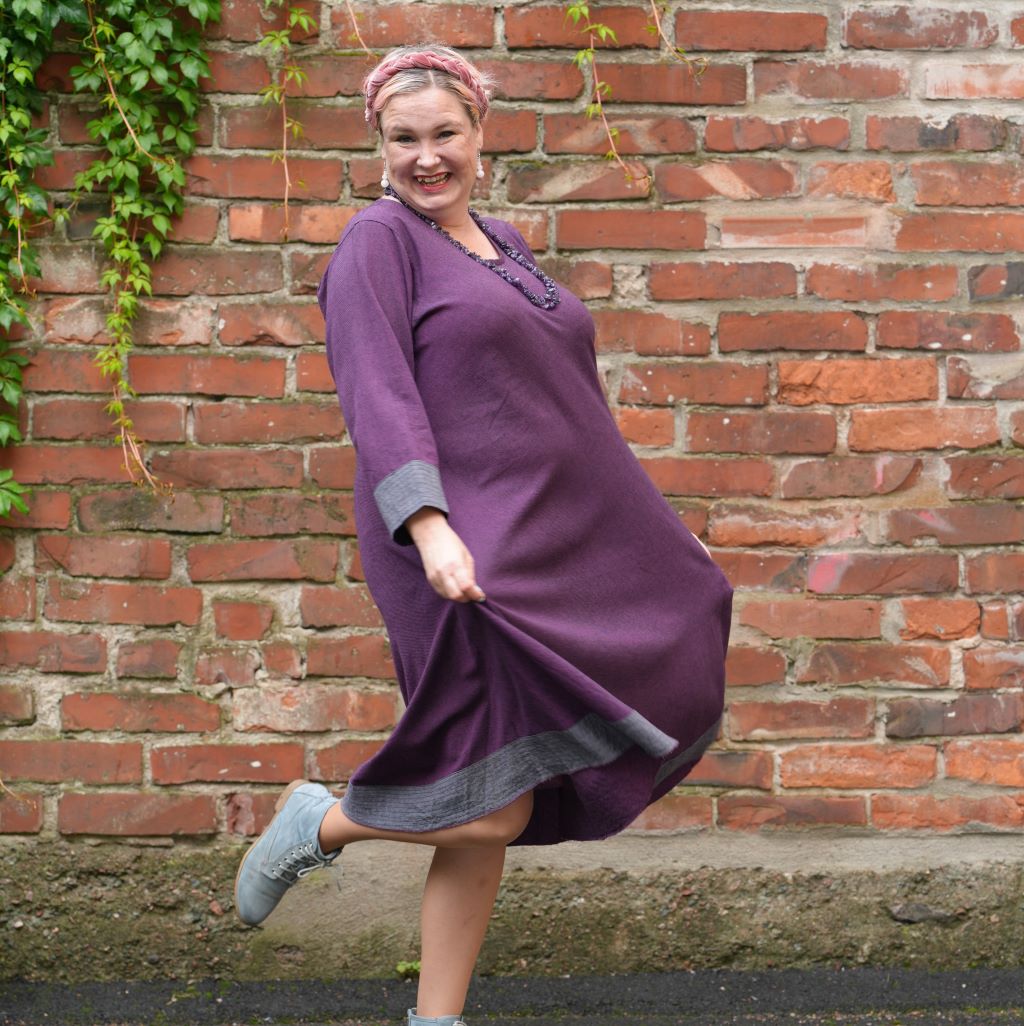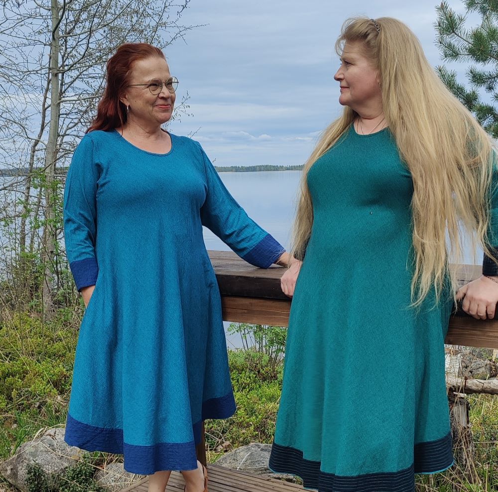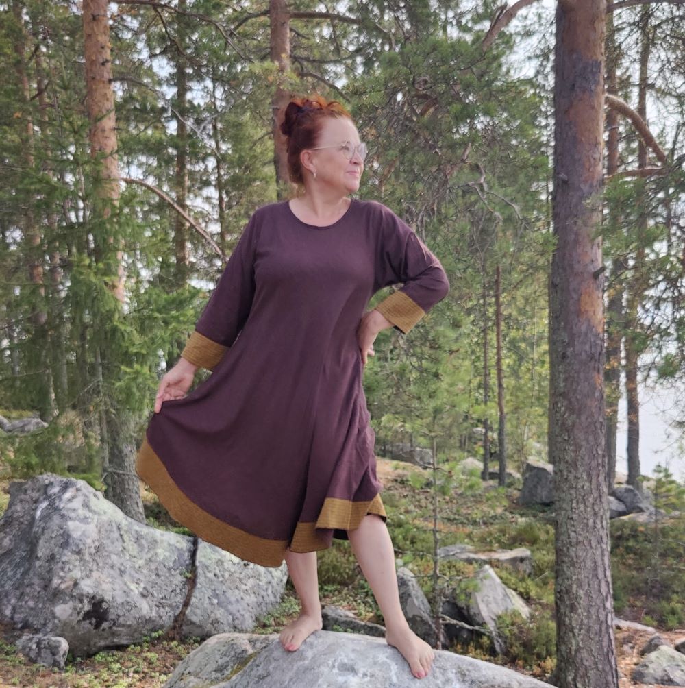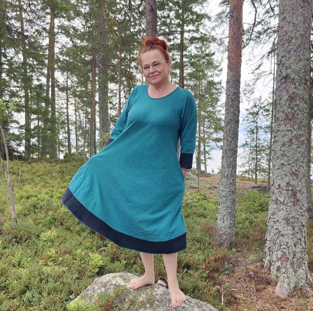 ”Verkkokauppanne toimii paremmin kuin isot, toimitukset ovat nopeita ja vaatteet ihania. Tämä puuvillakangas on ihan omaa luokkaansa – laadukasta, ei rypisty pahasti ja jopa joustaa hieman. Aliissa on yhä lempparini!” – Annika