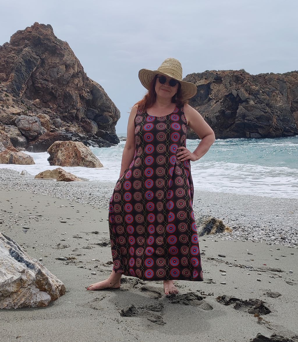 Samyami maximekossa on taskut ja mukava A-linja. Koot S-4XL.